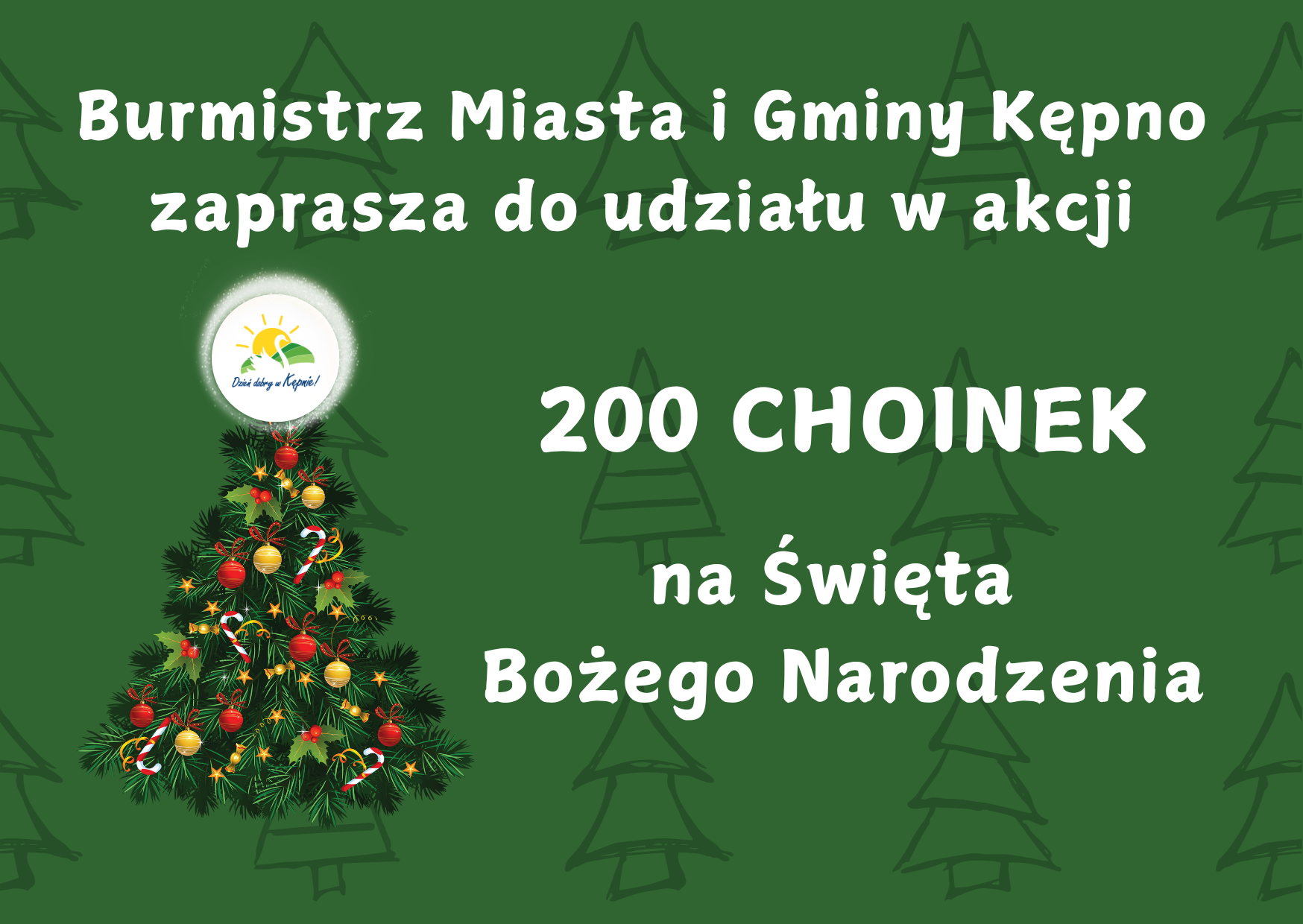 Burmistrz Miasta i Gminy Kępno zaprasza do udziału w świątecznej akcji pn. „200 choinek na Święta Bożego Narodzenia”. W ramach akcji 200-u pierwszych mieszkańców gminy Kępno otrzyma choinkę w donicy za minimum 10 kg odpadów: baterii, makulatury elektroodpadów oraz szkła oddanych w dniach od 1 do 10 grudnia 2025 r. do Punktu Selektywnej Zbiórki Odpadów Komunalnych w Olszowie.
